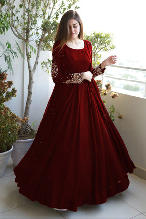 Heavy Embroidered With Front And Back Pearls Attached Gown With Long Maxi Trouser 3Piece