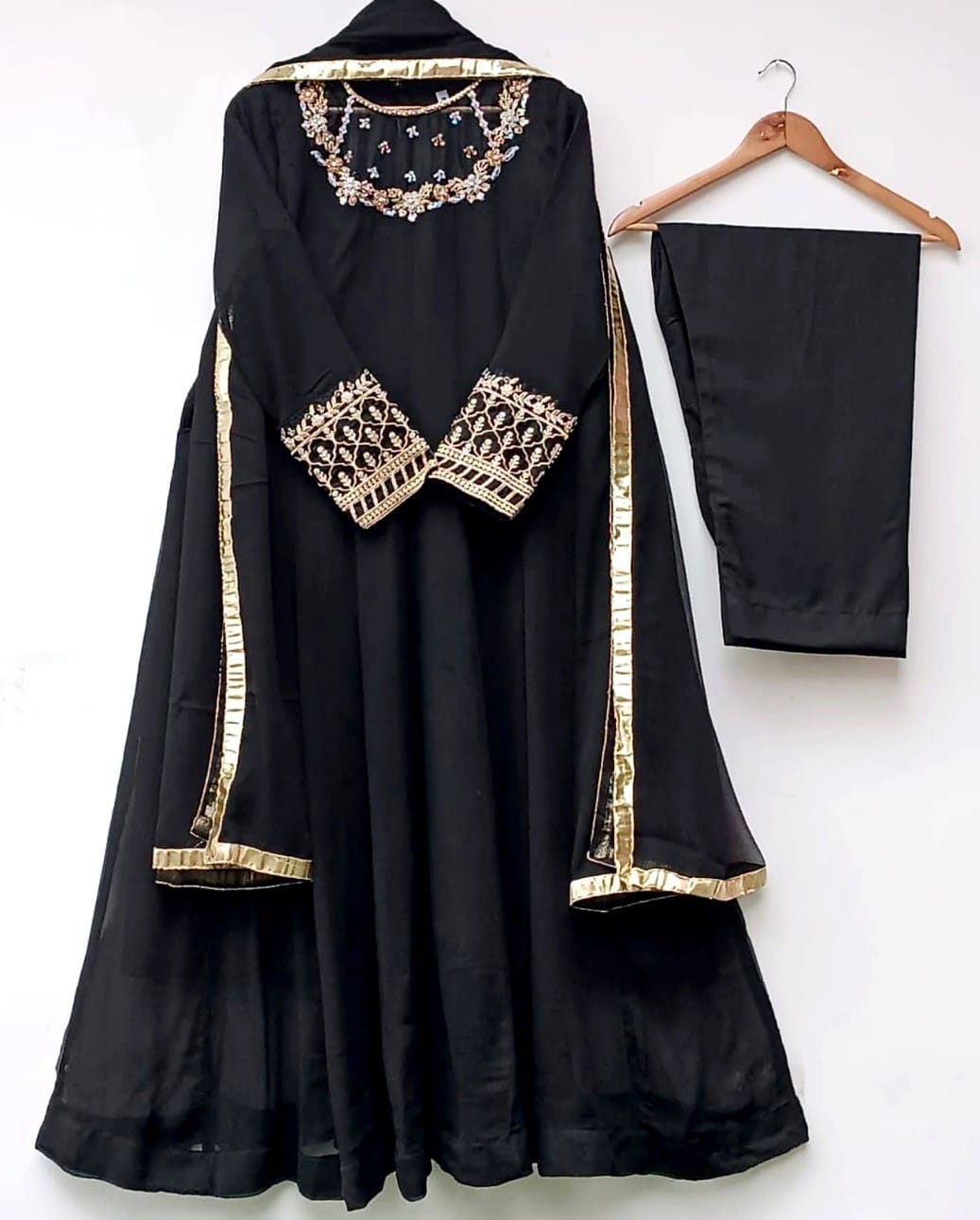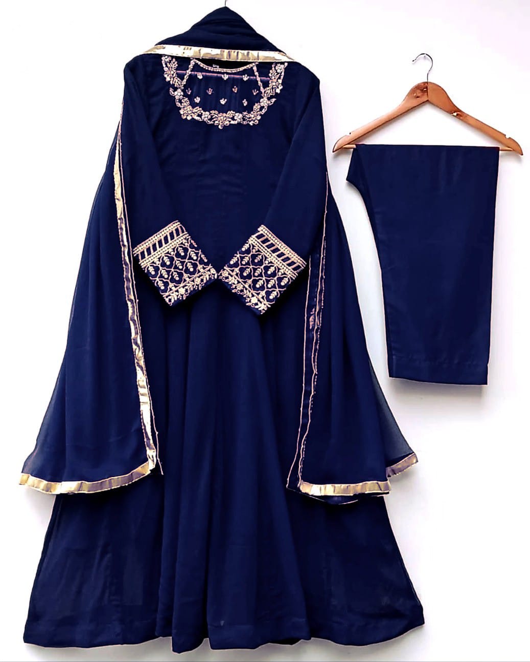 Handwork And Embroidery On Neck,Sleeves Maxi With Lace Work Duppatta And Trouser 3Pcs