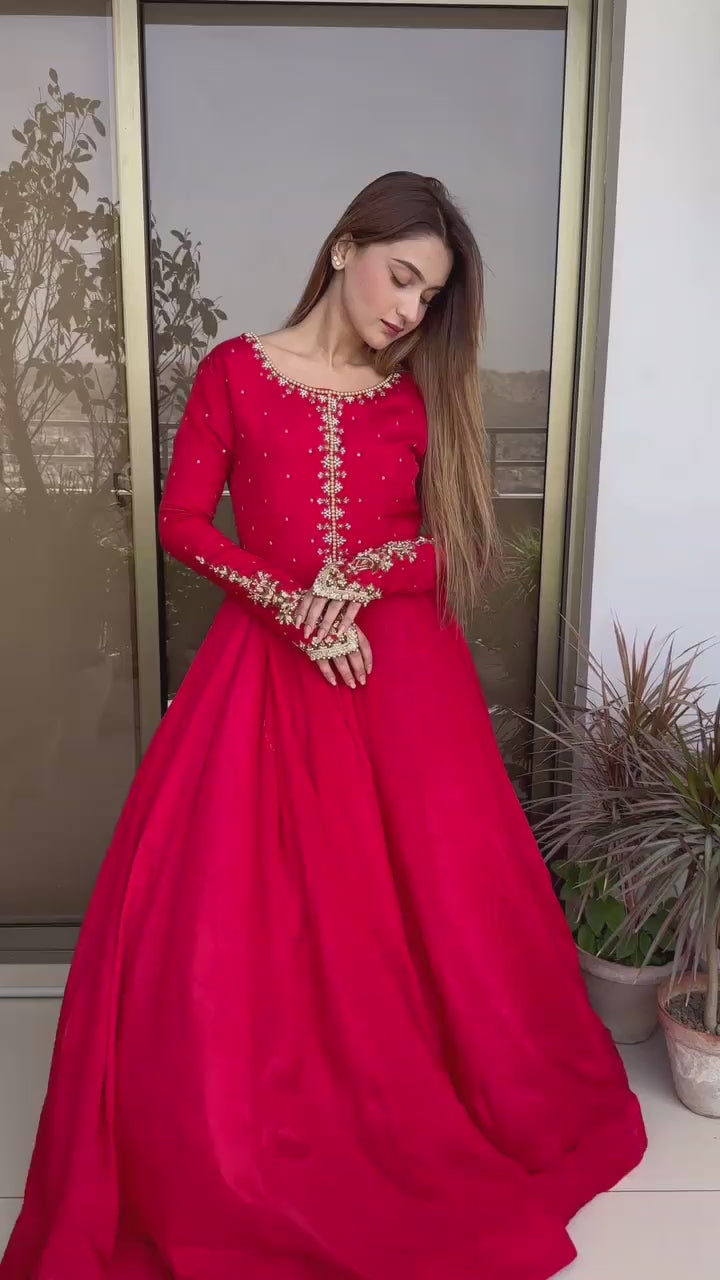 Paired with a soft chiffon dupatta and plain trouser, it’s the perfect outfit for weddings, parties, and formal occasions.