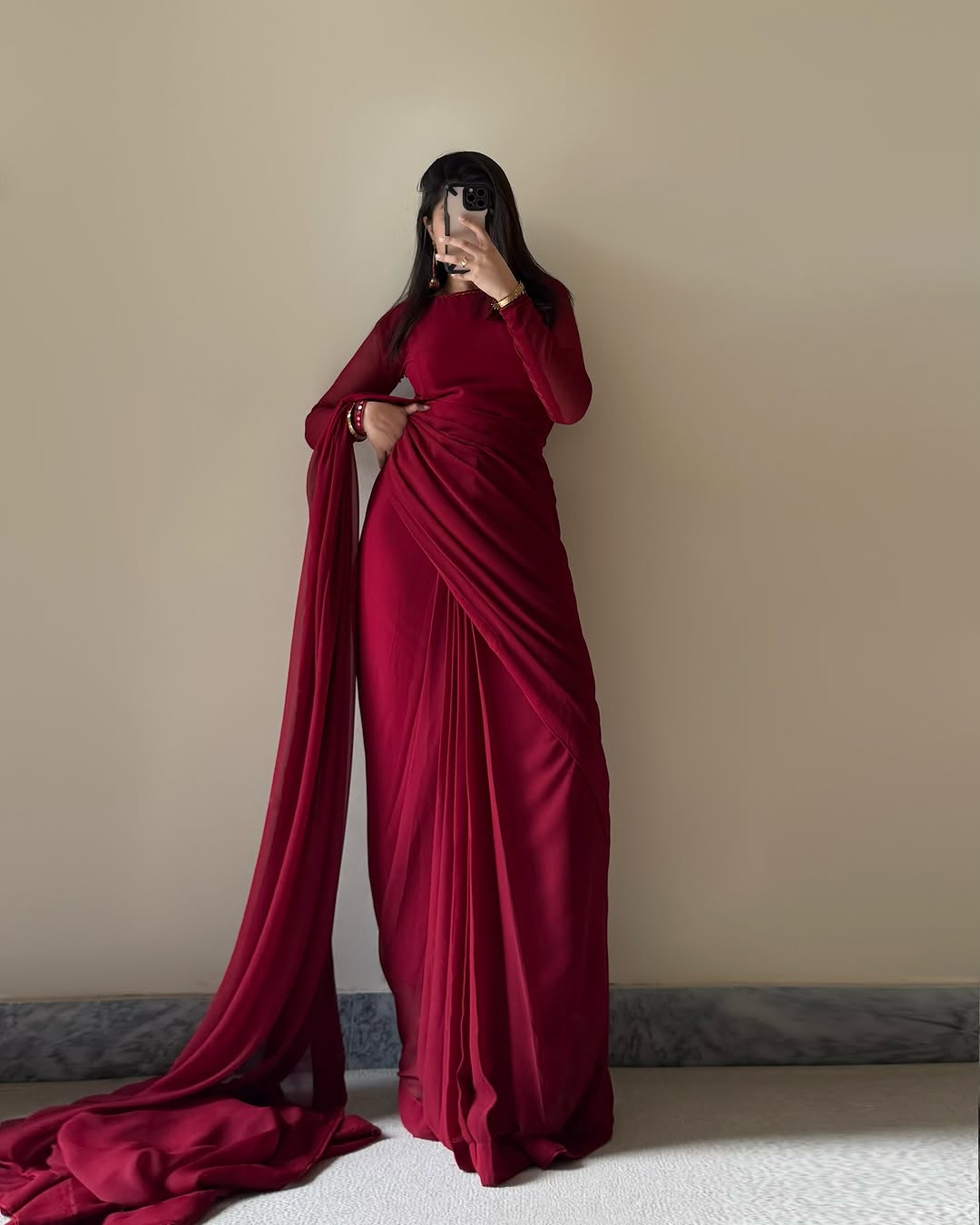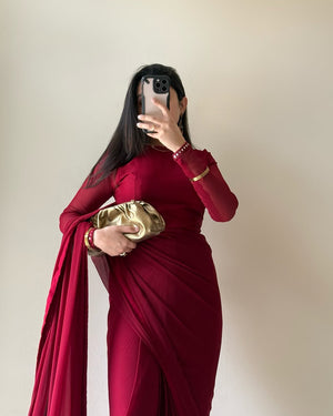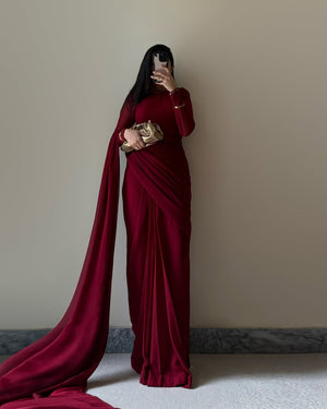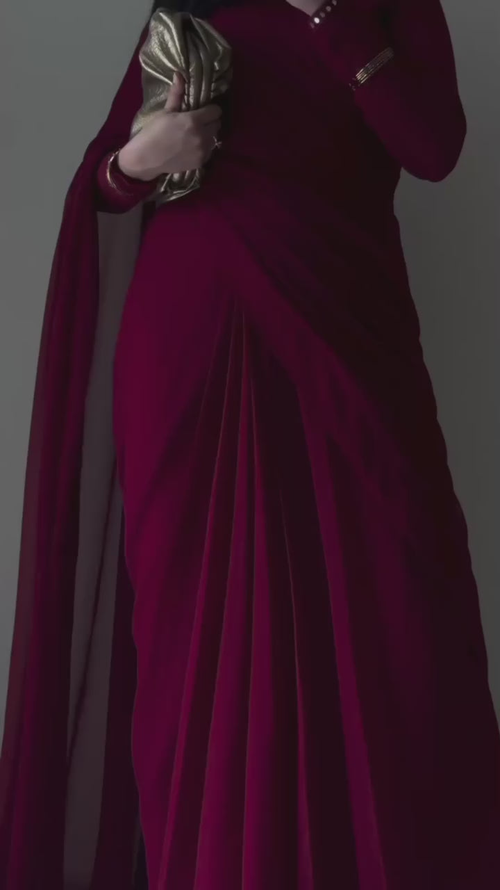 Gulnaar – Deep Maroon Chiffon Saree Elegance